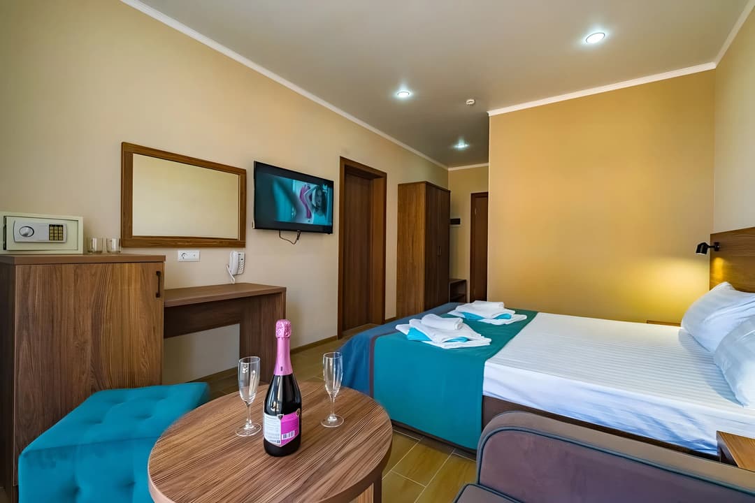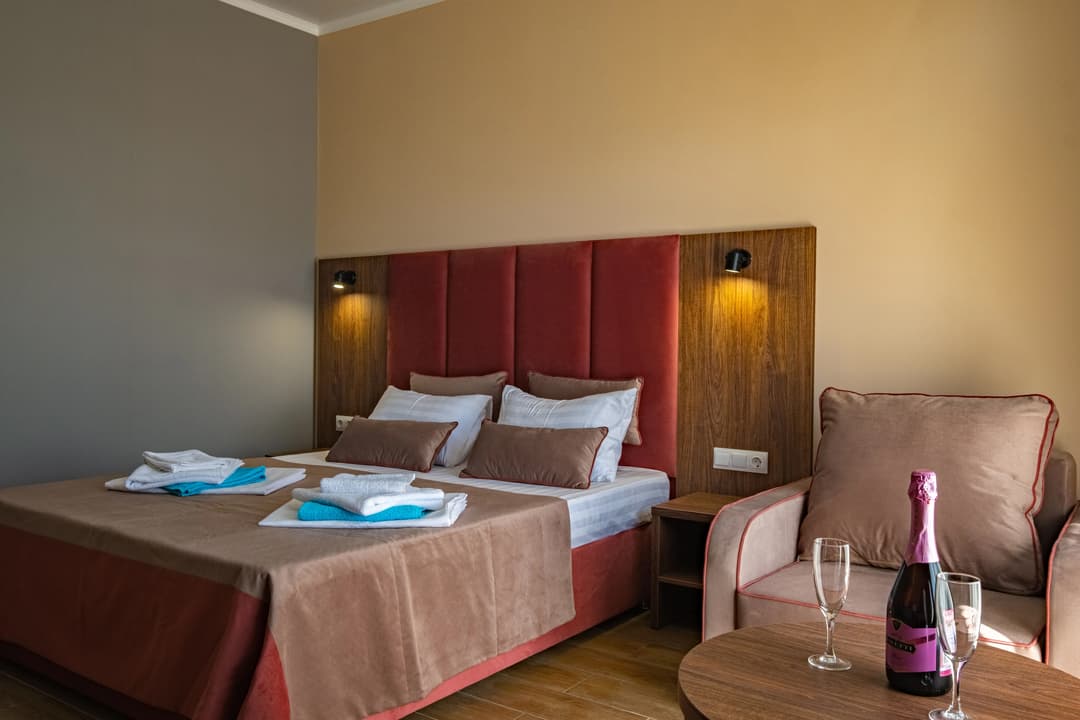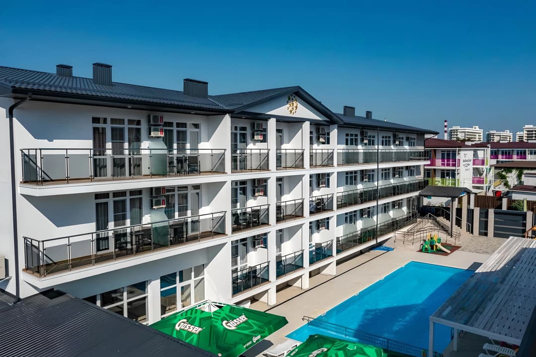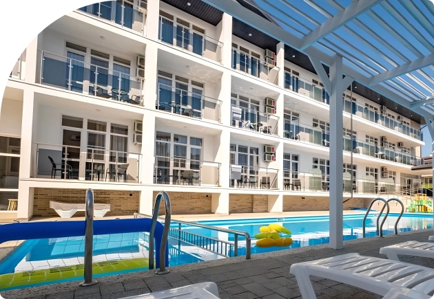 Территориально мы расположены в Витязево, в шаговой доступности море, парк развлечений, рестораны, клубы, аквапарк. В то же время, территория расположена так, что вас не будут мешать шум оживленных улиц и заведений. Витязево — пригород Анапы, куда без труда можно добраться разными способами. В то же время наш пляж выгодно отличается от пляжей Анапской бухты.